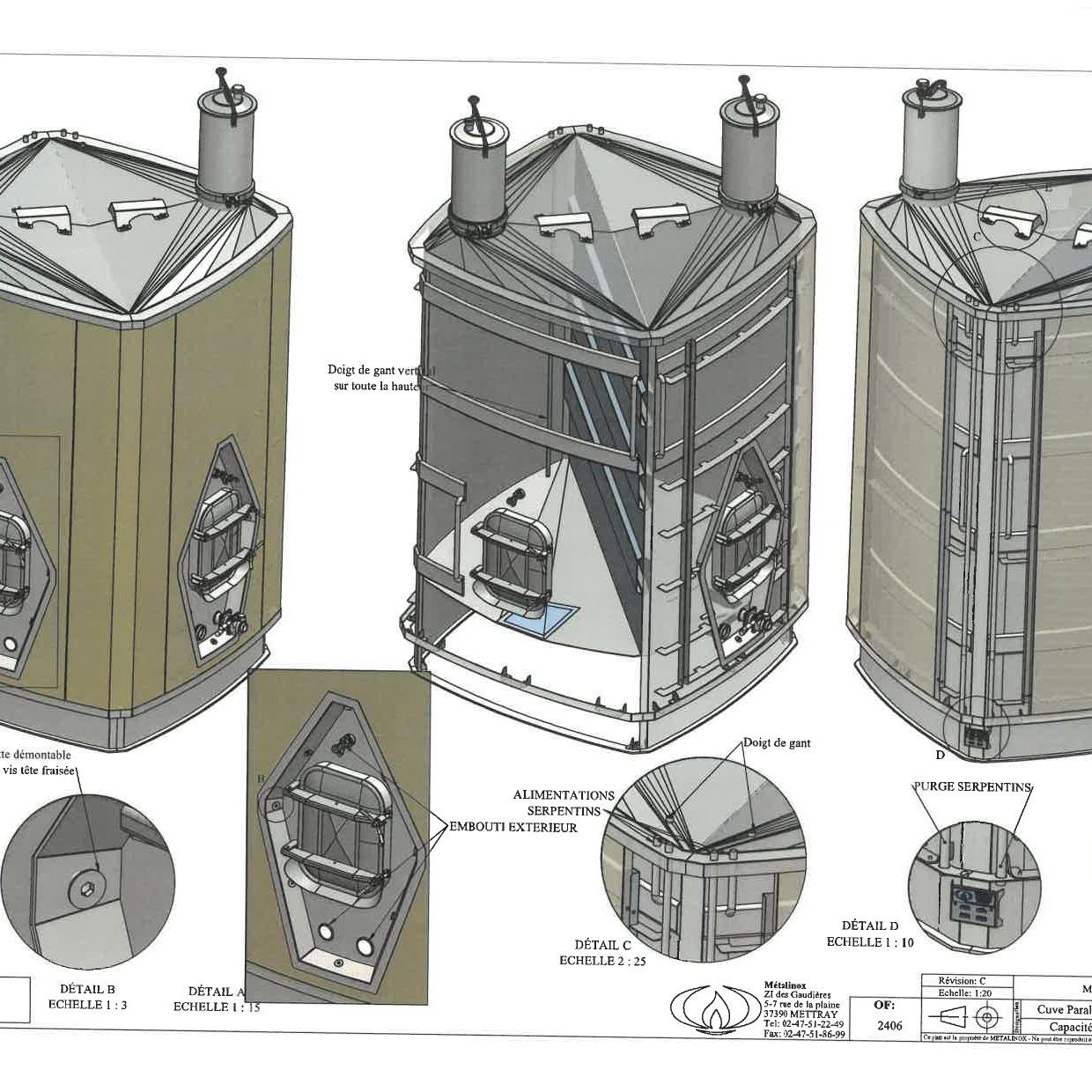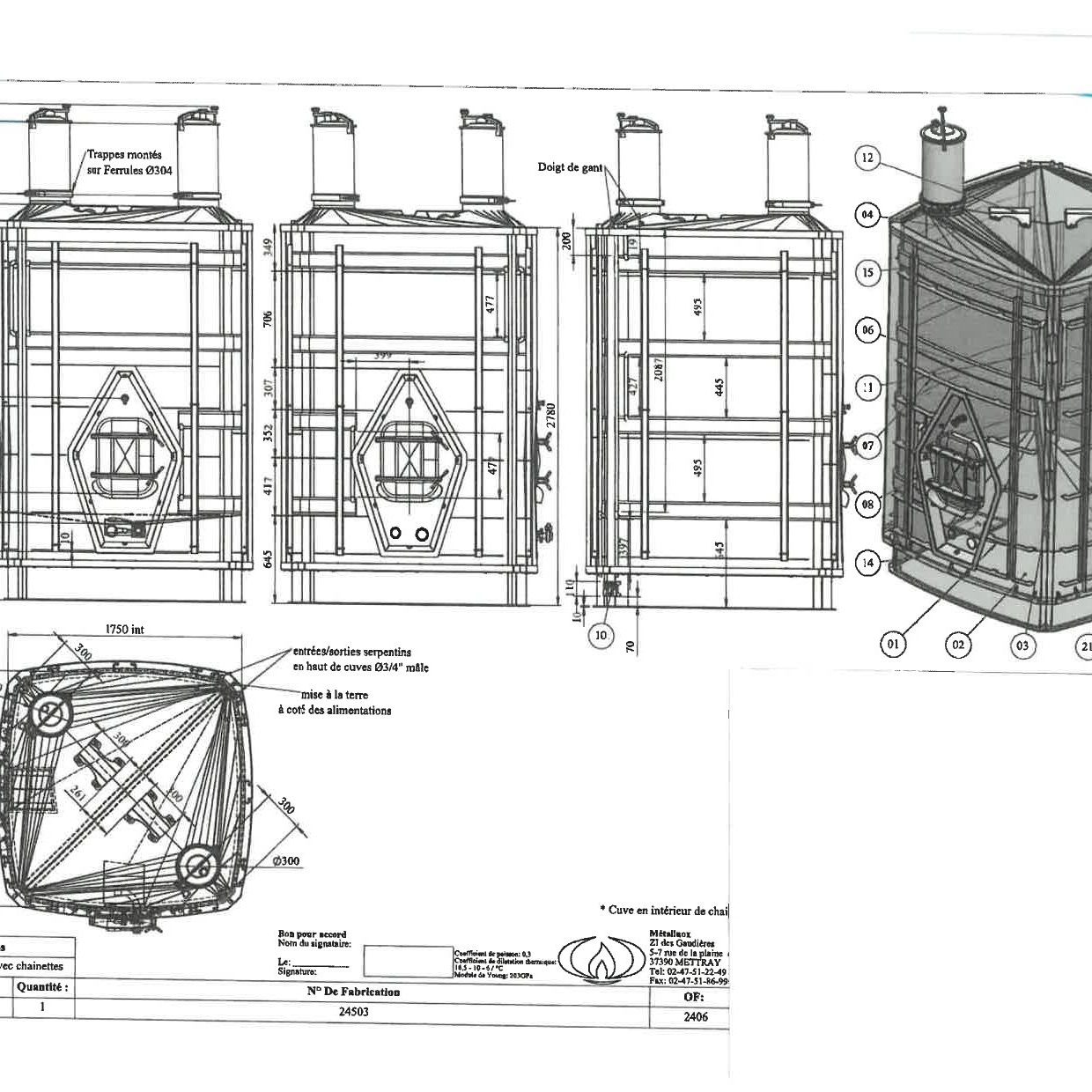 - 2 cheminées Ø 300 démontables sur clamp avec trappes pivotantes et basculantes