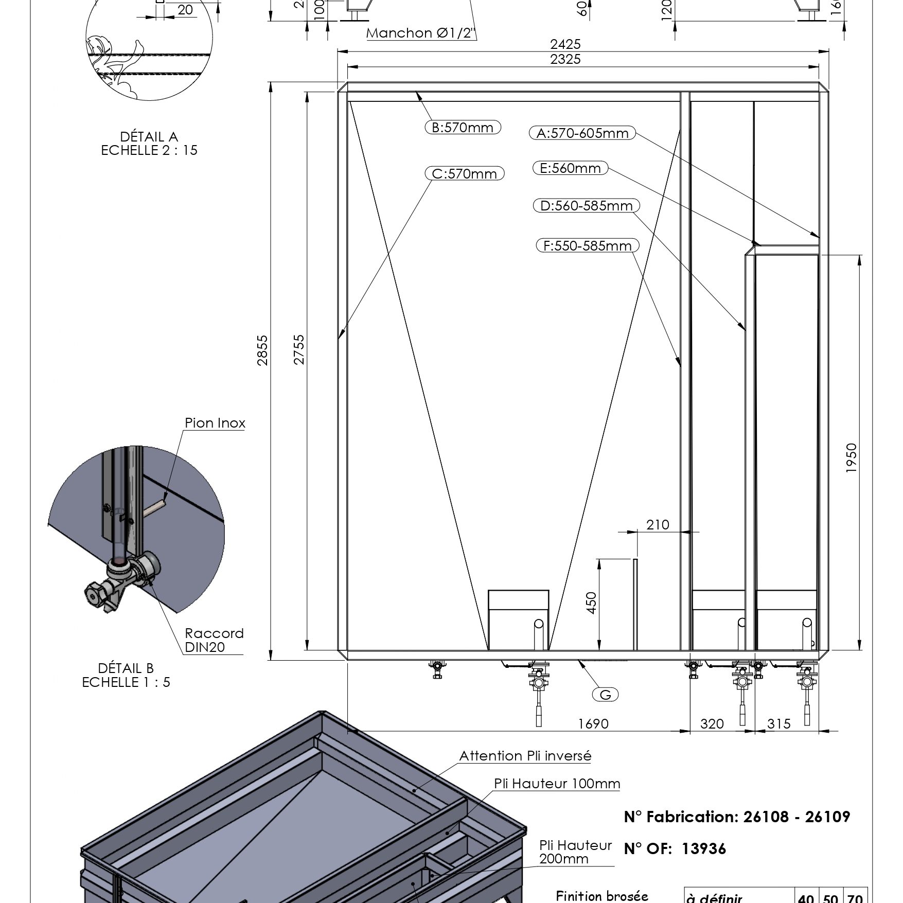 - Matériaux : INOX 304 L